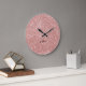 Um relógio de parede moderno com um design de fundo brilhante rosa ouro girado e um guião preto com letra de mão. Personalize com seu nome.