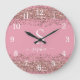 Relógio Grande Nome do Script do Monograma do Glitter Rosa na mod
