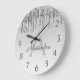 Relógio Grande Nome e inicial do monograma do Silver Sparkle Glit