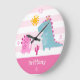 Relógio Grande Nome Personalizado da Menina Rosa Cinosa Dinossaur