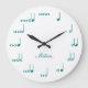 Relógio Grande Notas personalizadas da música - azul da cerceta