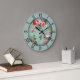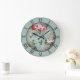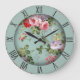 Relógio Grande Numerações Romanas de Design Floral Verde da Casa