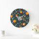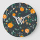 Bonito estilo de fazenda, padrão de botânica laranja fruta e fundo escuro cinza/marinho com numeração branca romana, silhueta de veados brancos e sua letra monográfica branca personalizada.