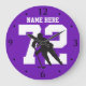 Relógio Grande Número do jogador de hóquei personalizado em roxo