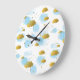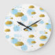 Relógio Grande Nuvens de Aquarela Azul Douradas Estrelas Céu