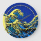 Um desenho personalizado inspirado no Excelente Wave de Kanagawa pintado pelo antigo artista japonês Hokusai. Ele é renderizado em um estilo vibrante de pop azul e amarelo. Soa bem, uma ideia de presente de excelente.