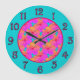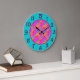 Relógio Grande O hibiscus floresce o rosa na turquesa