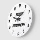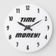 Este é um relógio de parede limpo e elegante, fundo branco com números pretos de um estilo simples. O relógio perfeito para as pessoas que gostam de ser lembradas de seguir em frente! Apresenta o texto "Time is Money!" em um estilo de fonte que fala de urgência! Pode, naturalmente, alterar o texto para dizer outra coisa, se assim o desejar.