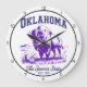 Display your Oklahoma state pride, with this charming wall clock. It features the Sooner State heritage, showcasing a majestic bison prairie mountains, design. An established 1907 gift, celebrating Great Plains history. This Oklahoma wall clock, adds timeless rustic charm to any home. Perfect for any one.