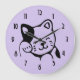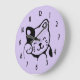 Relógio Grande Olá! de ondulação do gato preto e branco bonito do