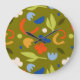 Um padrão floral lúdico, com flores abstrato, arrojadas, e folhas em tons quentes sobre um fundo verde-oliva. Perfeito para adicionar um toque de encanto retrorreflector e cor a qualquer espaço.