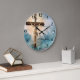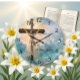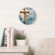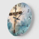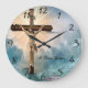 Um adorável relógio de oração de Jesus cristão com Jesus pregado na cruz sobre o oceano.