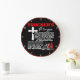 Este relógio de parede profundamente espiritual apresenta uma profunda "Oração do Caminhoneiro" para segurança e orientação na estrada. Em um fundo preto com uma borda vermelha, ele exibe com destaque uma cruz branca e o texto da oração do cheio, concluindo com "MANTENHA-ME SEGURO ME PEGUE EM CASA". Dois caminhões vermelhos estão no fundo. É um presente pensativo e espiritual para qualquer motorista de caminhão ou seus entes queridos. A ferramenta design também pode ser usada para adicionar texto personalizado se você quiser seu nome ou empresa neste relógio. Você pode personalizar a cor do quadro para qualquer cor que desejar, entrando na ferramenta design.
