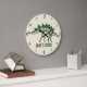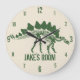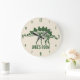 Personalize este relógio de dinossauro com qualquer nome. Ossos de dinossauro em verde.