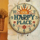 our happy place cozy home decor family quote timepiece, warm and welcoming clock, rustic living room accessory, inspirational wall art, happy home gift, heartfelt message clock, vacation home decor, comfort and joy clock