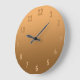 Um design de relógio de parede colorido, muito simples, tudo baseado em uma cor: Ouro. Os dígitos são números regulares com contorno preto minúsculo. Os dígitos e o plano de fundo são gradados opostos, fazer os dígitos se destacam de uma forma legal. Procure outras versões coloridas, como chalé, cor-de-rosa, ouro, azul e cinza.
