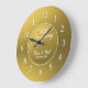 Elegante relógio do 5º aniversário de casamento com um fundo brilhante de ouro. Personalize com o nome do casal do ouro.