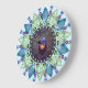 Relógio redondo de parede acrílica de 10,75" com uma imagem de topaz azul em forma de diamante e pedras de peridot, triângulos esmeraldas, pérolas e fibras em um cenário de ornamentado. Veja toda a coleção Gemstones & Medallions Clock na seção HOME.