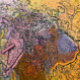 Uma design de arte abstrato incomum e colorida de uma ovelha.
