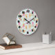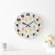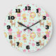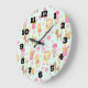 Um relógio com um padrão caprichoso que inclui uma coleção de brinquedos e animais deliciosos para crianças.