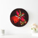 Padrão de Abstrato de Arte Vermelha Verde Floral Moderna #02 Relógio de Parede Redonda