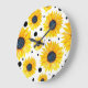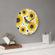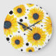Relógio Grande Padrão de Girassóis Amarelos em Fundo Branco