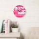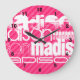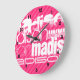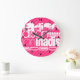 Relógio Grande Padrão de Nome Branco Personalizado em Strips Rosa