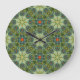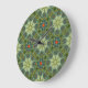 Relógio Grande Padrão de vinheta em verde com flores azuis