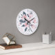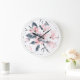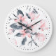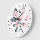 Relógio Grande Padrão Floral de Aquarela Rosa e Cinza