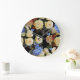 Relógio Grande Padrão moderno floral, rosas brancas, hydrangea az
