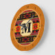 Relógio Grande Padrão Tribal Dourado Vermelho Design do Sudoeste