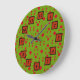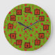 Relógio Grande Padrão Vermelho abstrato Verde com Bits e Quadrado