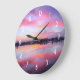 Um lindo pôr do sol rosa sobre um lago calmo com uma fileira de árvores ao fundo. Uma mistura e mistura adoráveis de nuvens coloridas que incluem rosa, azul, roxo e amarela. Iluminação impressionante e melosa, sombras e reflexões.