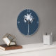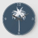 Relógio Grande Palm Tree Vintage Tropical Elegante Azul Branco