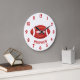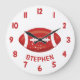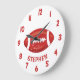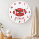 Grande relógio de parede de quarto de futebol de meninos vermelhos fofos. Personalize este design personalizado com seu próprio nome ou texto.