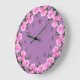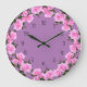 Relógio de decoração de paredes florais rosa elegante projetado com flores rosa-rosa em um padrão de coroa circular e números de caras de relógio clássicos projetados como um relógio de banheiro, relógio de cozinha ou design de relógio de parede.