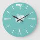 Relógios modernos de decoração de parede desenhados com um secador de pano, pente de cabelo, escova de cabelo e hairstylist, em um belo fundo colorido de pele que você pode exibir em uma área de espera de salão de beleza, em sua própria estação independente de cabeleireiro, ou em casa na parede do seu quarto.