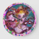 Branca vibrante e pintura artística com confete colorido..Amor mítico entre Harlequin e Columbine, pintura acrílica inspirada em máscaras de pena veneziana e Commedia dell'arte - Veneza. Cor verde-rosa-púrpura brilhante.