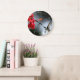 Relógio Grande Pássaro Humming e Flor Vermelha