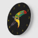 Relógio Grande Pássaro Tropical Negro Amarelo Verde Colorido