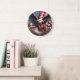 Showcase your love for the United States with this beautifully designed patriotic clock. Featuring a powerful bald eagle—America’s enduring symbol of freedom—paired with the iconic American flag, this timepiece captures the spirit of national pride and unity. Rich red roses add a touch of honor and remembrance, creating a balanced design that is both bold and elegant.