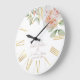 Relógio Grande Peach & White Watercolor Flowers