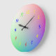 O design é vibrante e divertido, apresentando doze (12) campos de tipografia personalizáveis com numerais arábicos, acompanhados por peças de quebra-cabeça vermelhas, azuis, verdes e amarelas brilhantes que servem como marcadores de hora, tudo isso contra um cenário encantador de tons pastel de arco-íris suaves. As doze peças do quebra-cabeça também podem ser personalizadas, permitindo que você as substitua por fotos pessoais ou obras de arte infantis de sua escolha.