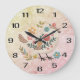 Relógio Grande Pequeno Pássaro Sai Flores de Parede Rosa