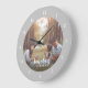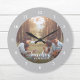 Crie um especial de um tipo de relógio redondo ou quadrado personalizado com sua foto e seu nome de família monograma. O design apresenta fontes simples, preto e branco, ou usa as ferramentas design para escolher fontes e cores que correspondam ao seu próprio estilo de decoração doméstico. Um relógio personalizado é uma ideia única de presente de Natal para avós, novos pais ou um presente divertido para recém-casados decorando juntos sua primeira casa.