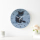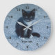 Personalize (adicione seu texto ou mude a imagem) uma fotografia de gatinho Tuxedo (preto e branco) projetada em Zazzle Wall Clocks. Este é um gatinho bonitinho sentado e assistindo. É um gatinho preto, mas manchas brancas no pescoço, no peito e nos dedos. Há também uma mancha branca perto do nariz. E os gatinhos também são brancos. Seus olhos azuis cinza parecem heteros para você. presente de excelente para o muro do quarto das crianças com a adição do texto.