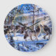 Relógio Grande Pintura de Lobos cinzas