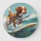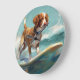 Relógio Grande Pintura de surfe na praia de Brittany Spaniel