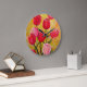 Relógio Grande Pintura de Tulipas Rosa e Vermelha