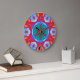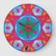 This Kaleidoscope clock serves as a mandala for meditation, a focal point for the imagination, and as a functional timepiece. Kinetic Collage kaleidoscope compositions are created from psychedelic light show screen capture images. 1/30th of a second captured in space and time. Each unique image’s name is based on some special characteristic of the composition, or on whimsy. If you gaze at this Kaleidoscope clock long enough, time may stand still. . . Brilliant colors paint the screen in projected syncopation. Exotic shapes shift and careen, spinning vision with sensation. A crazy scene and that’s a fact. Making sense seems out of reason. But when you snap a slice intact — there’s potential for cohesion. Copy and paste it, flip and seal. Repeat until the arc’s complete. Construct it so it will reveal a bright kaleidoscopic treat. Thus from chaos, a balanced form. Perfect in pleasing symmetry. If only life would so conform, we all could live in harmony…Please note: If you wish to have any Zazzle product imprinted with one of my arts, let me know your preferences and I’ll make it happen. kineticcollage@cox.net